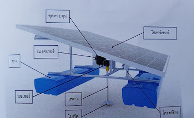 โดยเครื่องเติมอากาศพลังงานแสงอาทิตย์ ประกอบด้วย แผงโซลาร์เซลล์ขนาด 300 w จำนวน 2 แผง, DC เบรกเกอร์, ชุดควบคุม MPPT, DC มอเตอร์ 500 W, ใบพัด, เพลากลวง,โครงสร้าง และทุ่นลอยน้ำ (รับน้ำหนักได้ไม่น้อยกว่า 50 kg) จำนวน 2 ทุ่น ซึ่งเบื้องต้นใช้งบประมาณในการสร้าง 40,000 บาท และในอนาคตหากพัฒนาได้อย่างสมบูรณ์แบบแล้ว อาจจะจำหน่ายให้กับผู้ที่สนใจต่อไป